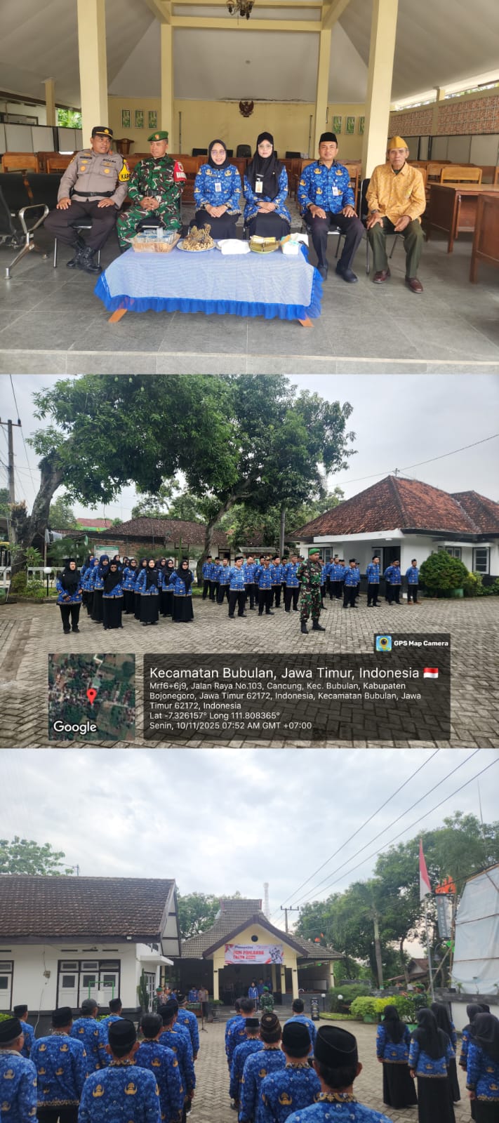 Pada hari Senin tanggal 10 Nopember 2025 bertempat di Halaman Kantor Kecamatan Bubulan telah diselenggarakan kegiatan upacara peringatan hari pahlawan. Pada kesempatan ini mengambil tema pahlawanku teladanku terus bergerak melanjutkan perjuangan. Hari pahlawan tidak hanya sekedar diperingati setiap tanggal 10 Nopember namun lebih dari pada bagaimana menanamkan nilai-nilai kepahlawanan kepada generasi sekarang untuk mengisi kemerdekaan . Upacara peringatan hari pahlawan dimulai pukul 08.00 Wib. Hadir dalam kegiatan tersebut, Camat Bubulan beserta Sekcam ,Kasi, Ka subag dan staf Bubulan , Kapolsek Bubulan beserta anggota, Danramil Bubulan beserta anggota, kepala KUA beserta staf, Korluh KB Bubulan besrta staf,Korluh Pertanian beserta staf, Kepala desa beserta perangkat desa se-kecamatan Bubulan. Kegiatan upacara berjalan tertib , khidmad dan lancar.
